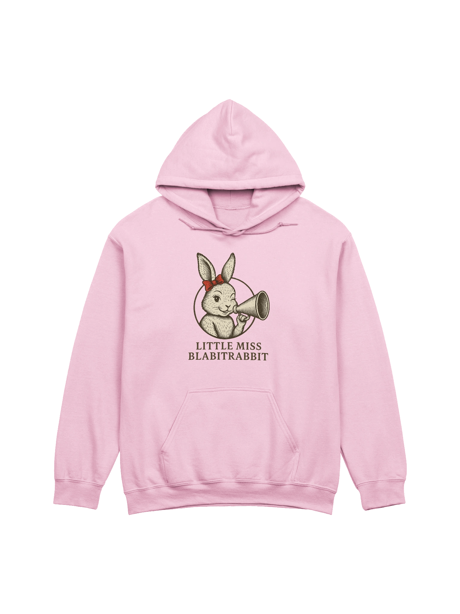 Make a statement without saying a word. Our Little Miss Rabbitblabbit Hoodie keeps you cozy warm while offering a clever wink to everyone you meet. Gildan Classic Hoodie, unisex sizing, double-lined hood, amusingly stylish.